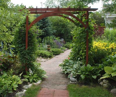Garden #5 The well maintained front beds of this home let visitors know instantly that devoted gardeners live here, but the true treasure lies behind the hydrangea covered archway leading to the back yard. Many separate garden "rooms" have everything one could imagine, including a vegetable garden, winding pathways, a stream and frog-filled pond. It’s a surprising garden oasis tucked in among typical suburban homes.