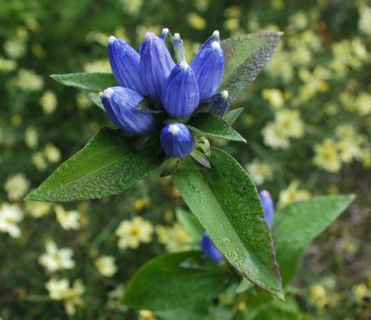 blue “bud” is actually the mature blossom of the bottle gentian (Gentiana